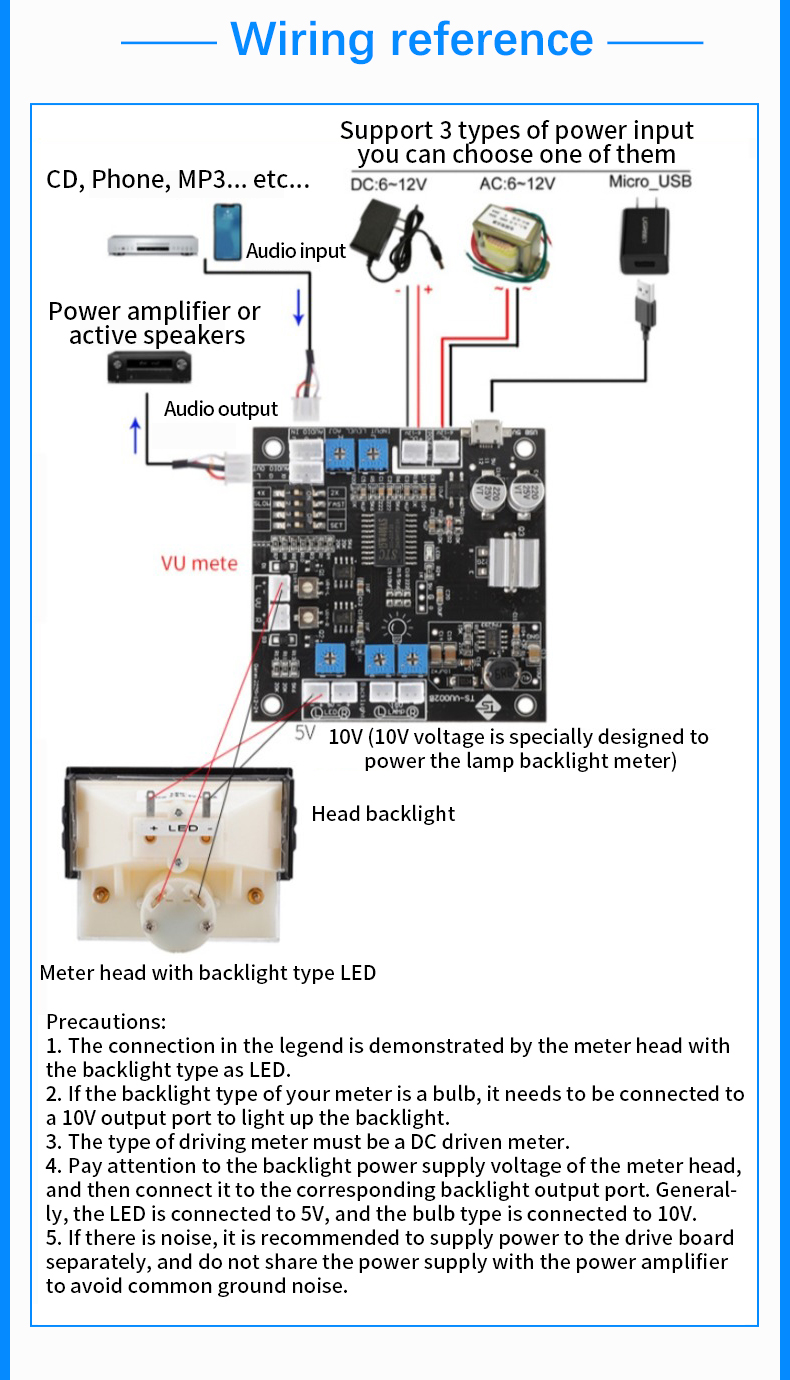 High-Precision Analog Audio Vu Meter Power LED Display for Amplifier Level Signal Stereo DB Indicator with Bo Music Light